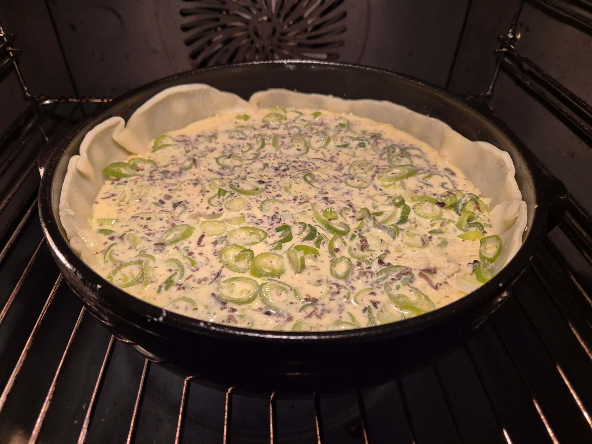 Den andra pajen jag lagade till när min goda vän skulle flytta var en ostpaj, en favoritpaj i mitt hus. Den här gången fick den smak av torkade trattkantareller, prästost och parmesan. Det bästa med den här typen av paj är att den går att variera i all oändlighet. Det beror bara på vad som finns hemma.