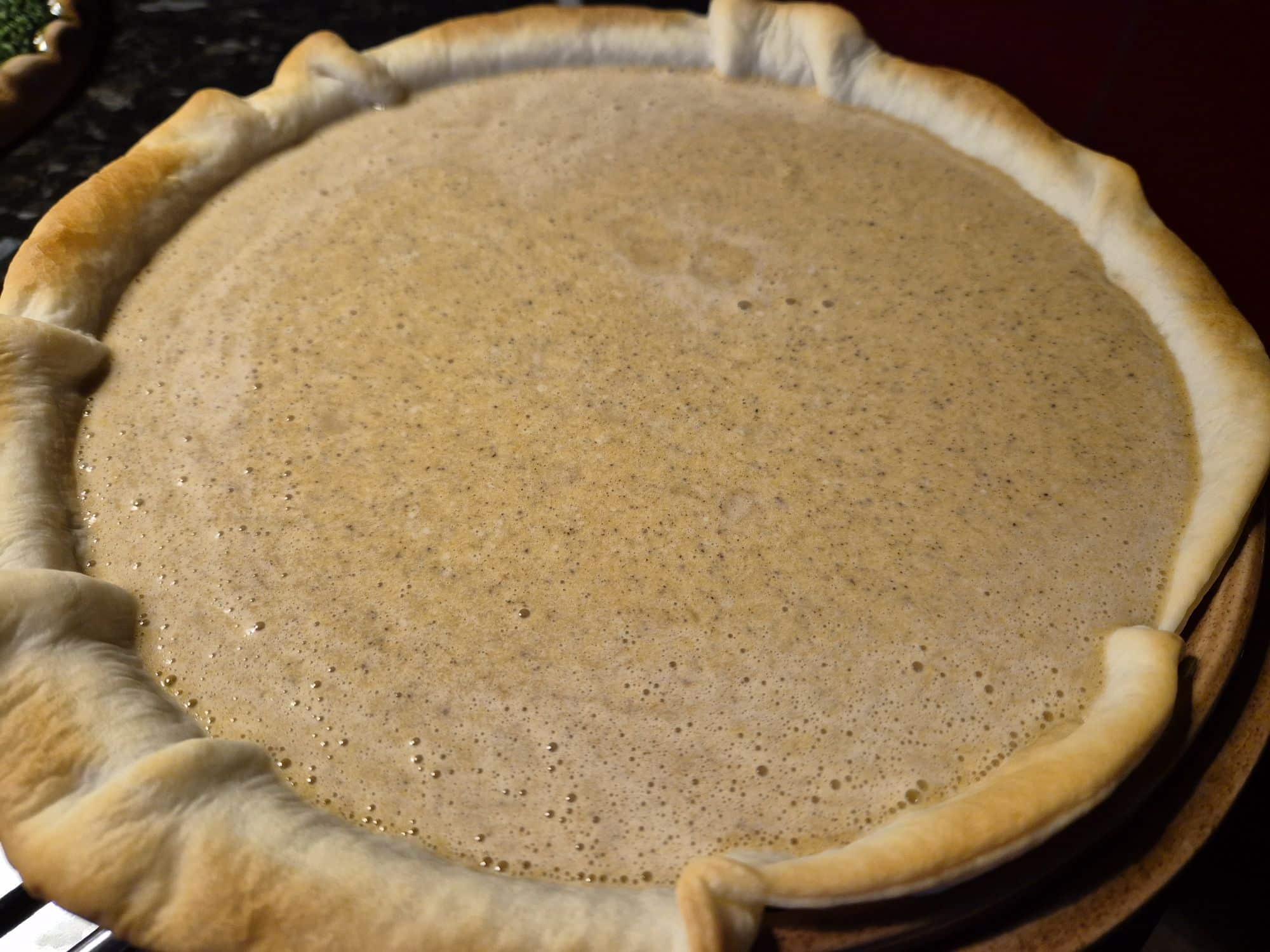 5. Häll fyllningen i pajskalet, grädda långt i nedre delen av ugnen, 175°, 50-60 minuter. Eller till dess att fyllningen stelnat till.