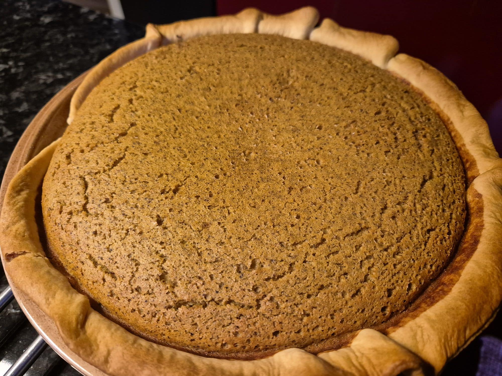 Traditionellt bakas och äts den i samband med Thanksgiving, en vanlig efterrätt då. För mig blev det första gången jag bakade en sån här paj, det blev även första gången jag åt pumpapaj. Den blev god, receptet jag följde kom från ICA .