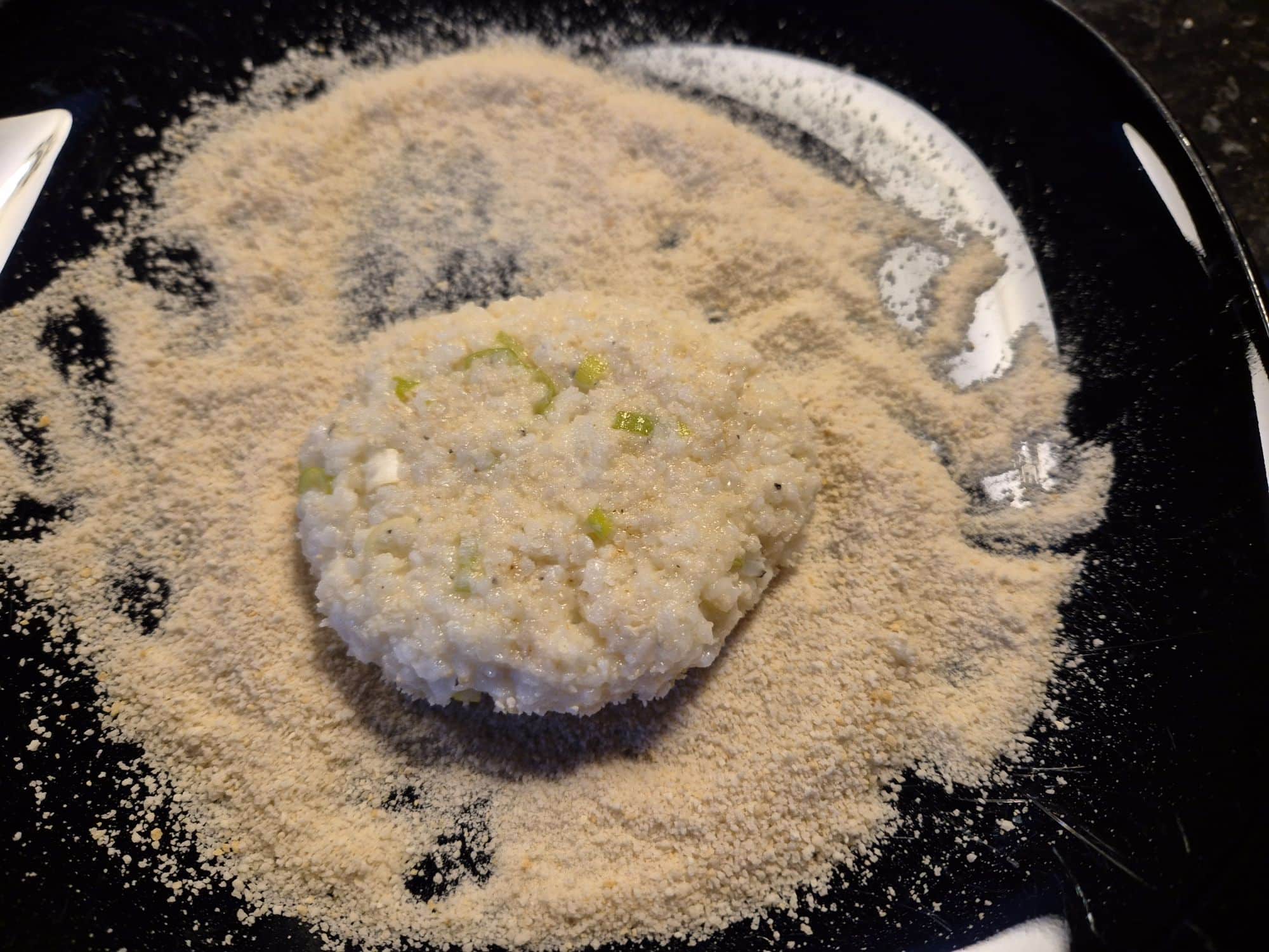 Häromdagen gjorde jag kyckling som jag serverade ris till. Då blev det ganska mycket klibbigt ris kvar så när vi skulle äta av kycklingen igen (som det också blev rester av) gjorde jag risbiffar istället för att bara värma riset som det var.
