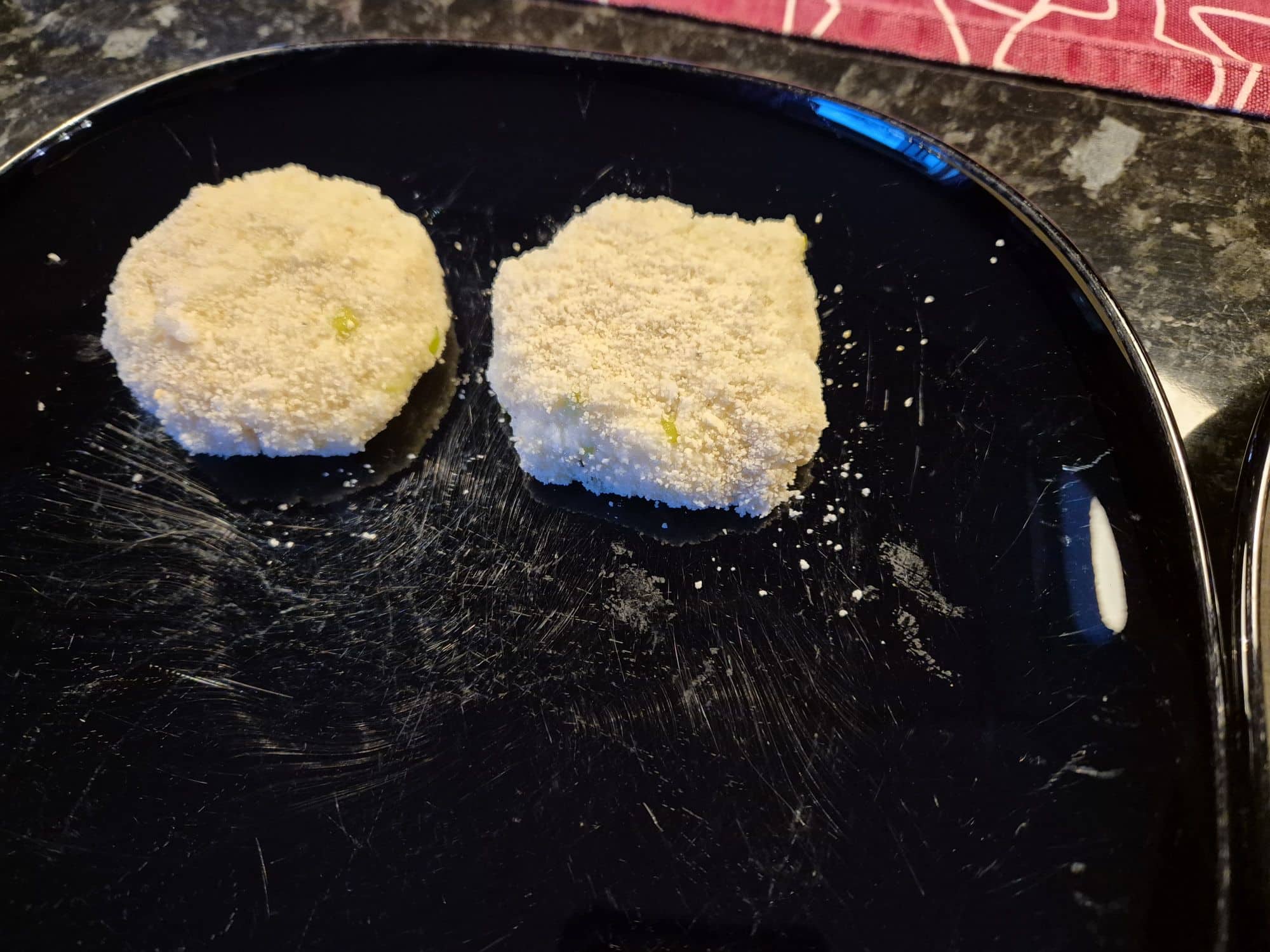 5. Forma biffar och vänd i ströbröd. Det blev sju biffar.