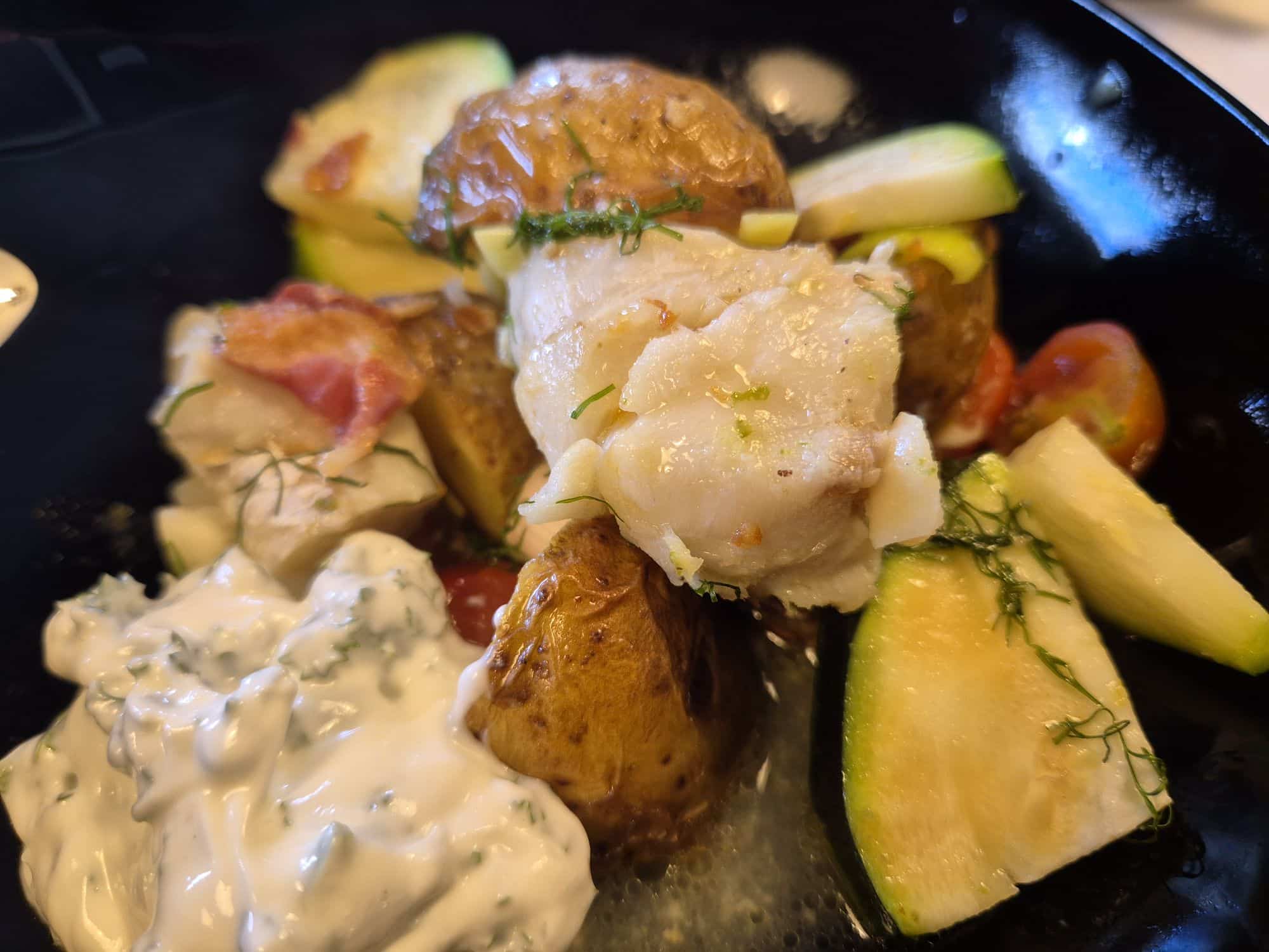 En mycket god fiskrätt som kommer bäst till sin rätt när allt äts samma dag. Vid uppvärmning tenderar fisken att bli torr så det är inte att rekommendera. I alla fall inte om du frågar mig. Men det här receptet räcker det till 3-4 portioner. Perfekt när det är mer än en person som ska äta.