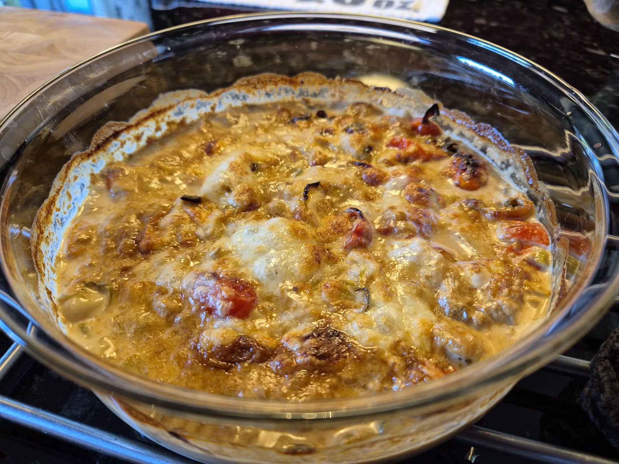 5. När det närmar sig servering strö över lite riven mozzarella och stoppa in i ugnen igen till dess att osten smält.