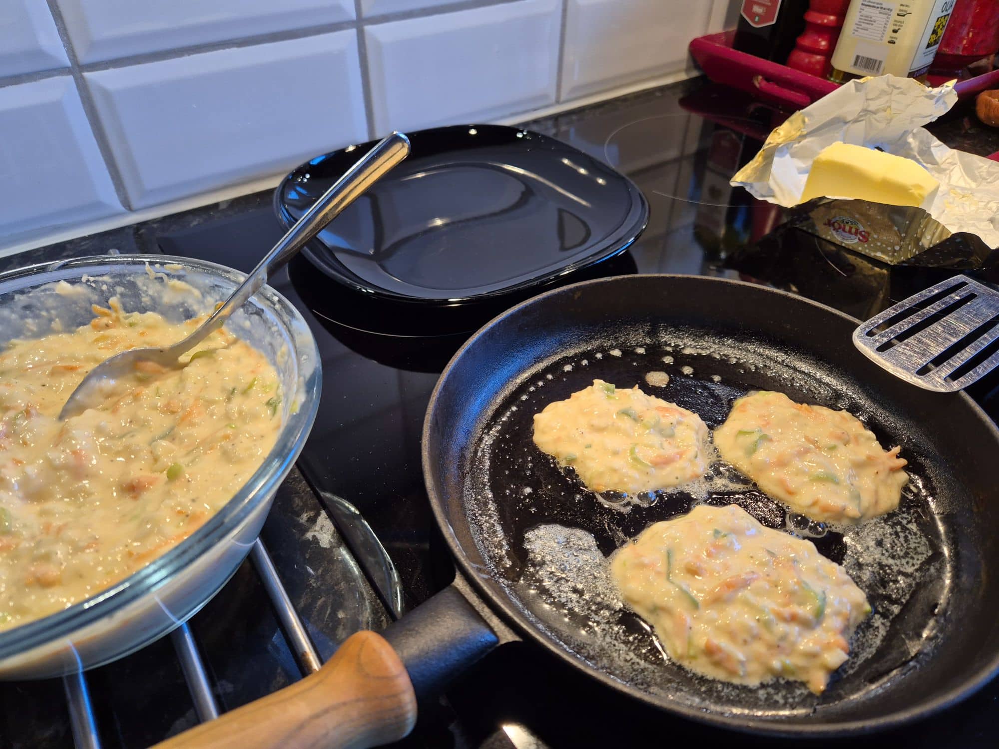 5. Stek små plättar i smör. Vänd dem inte för tidigt, då faller plättarna sönder.